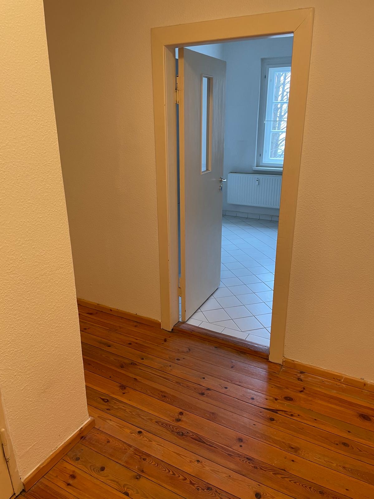 - Fußböden: Holzdielen in Flur und Zimmern, Fliesen in Küche und Bad