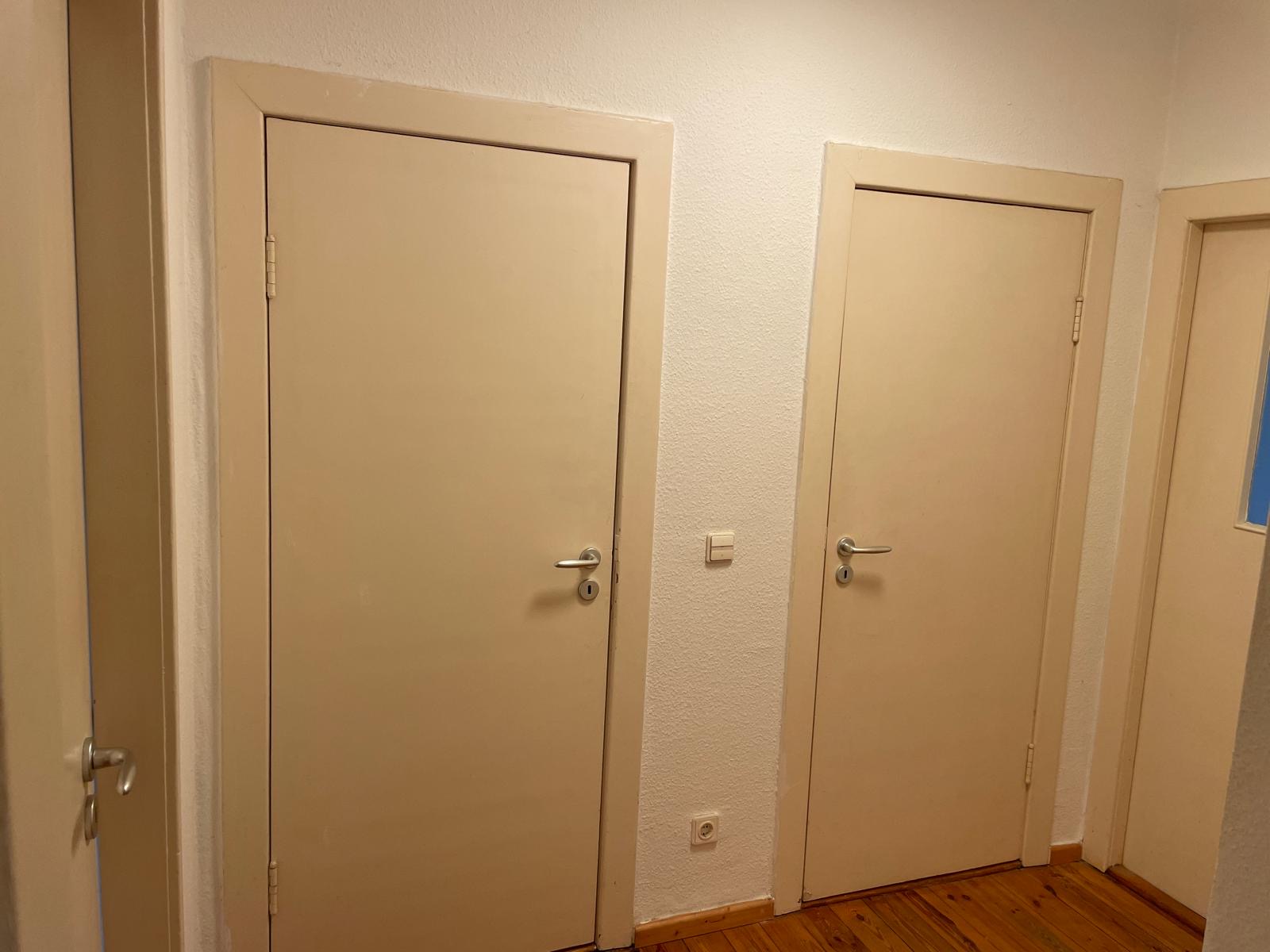 Die gut geschnittene Zwei-Zimmer-Wohnung in dem beliebten Kiez befindet sich im ersten Obergeschoss in einms ruhigen Haus mit zusätzlichem Blick in den großzügigen grünen Garten. Während der Renovierung 2017 wurde die gesamte Elektrik ausgetauscht, Stahl-Flachheizkörper eingebaut und im Bad ein Handtuch-Röhrenradiator angebracht. Die Zimmer und der Flur haben Holzdielen-Fussböden, Küche und Bad Fliesenböden. Die Küche erhielt eine Einbauküche mit E-Herd, Backofen und Ceran-Kochfeld, Dunstabzugshaube, Geschirrspüler und Kühl-Gefrierschrank. Die Raumhöhe in der Wohnung beträgt 2,90 m. Der Balkon ist an der Straßenseite. Zur Wohnung gehört ein schöner großer Keller.